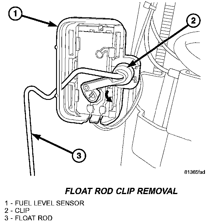 REMOVALCAUTION: To prevent damage to the float rod, the float and float rod must be removed from the pump module. This step must be done before the pump module is removed from the fuel tank.