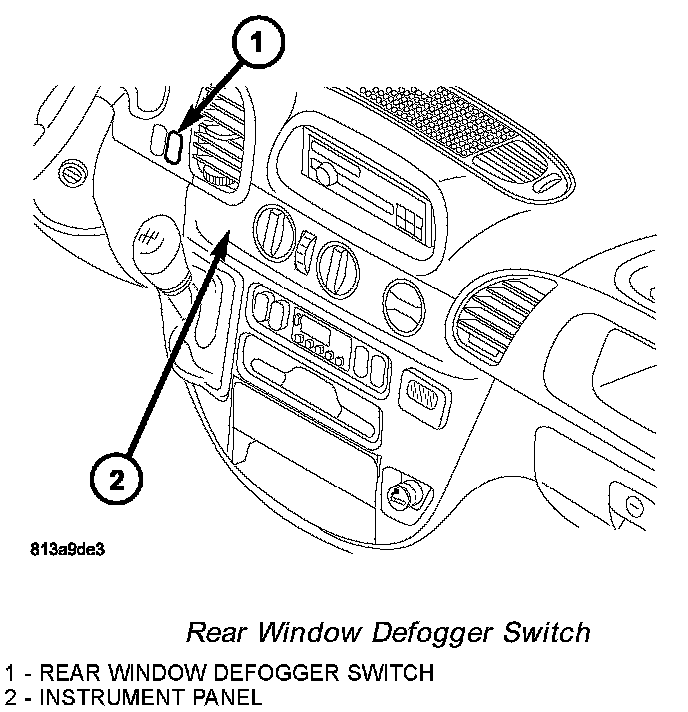 The EBL system is turned On or Off by a control switch located in the instrument panel near the right side of the steering wheel, which sends a request signal to the rear window defogger module that operates the left and right rear window defogger relays located in the fuse/relay block under the drivers seat.