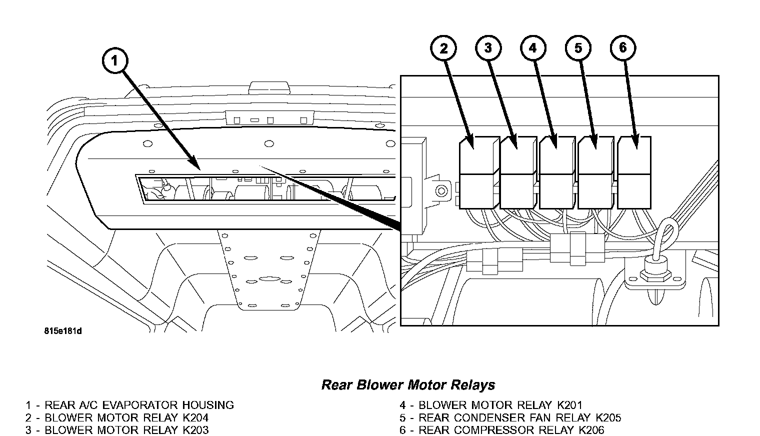 1. Position the rear blower motor relays into the proper receptacle of the relay block located in the rear A/C evaporator housing as necessary.
