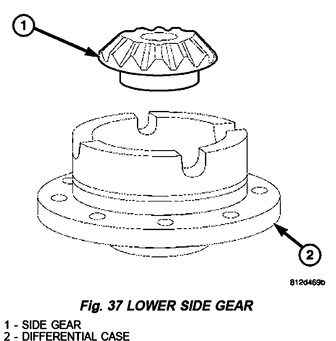 5. Remove lower differential side gear (1) and shim (Fig. 37).