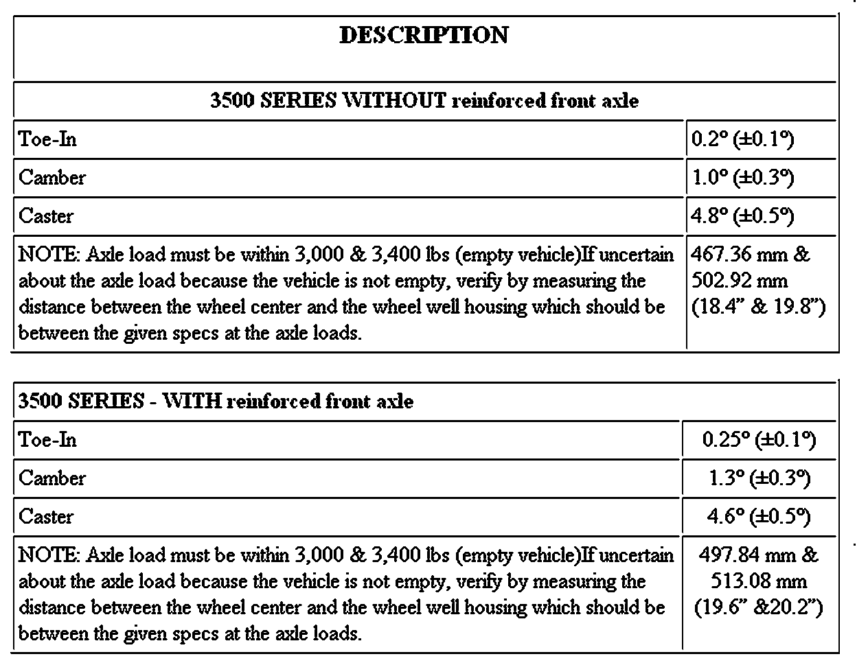 Alignment: Specifications