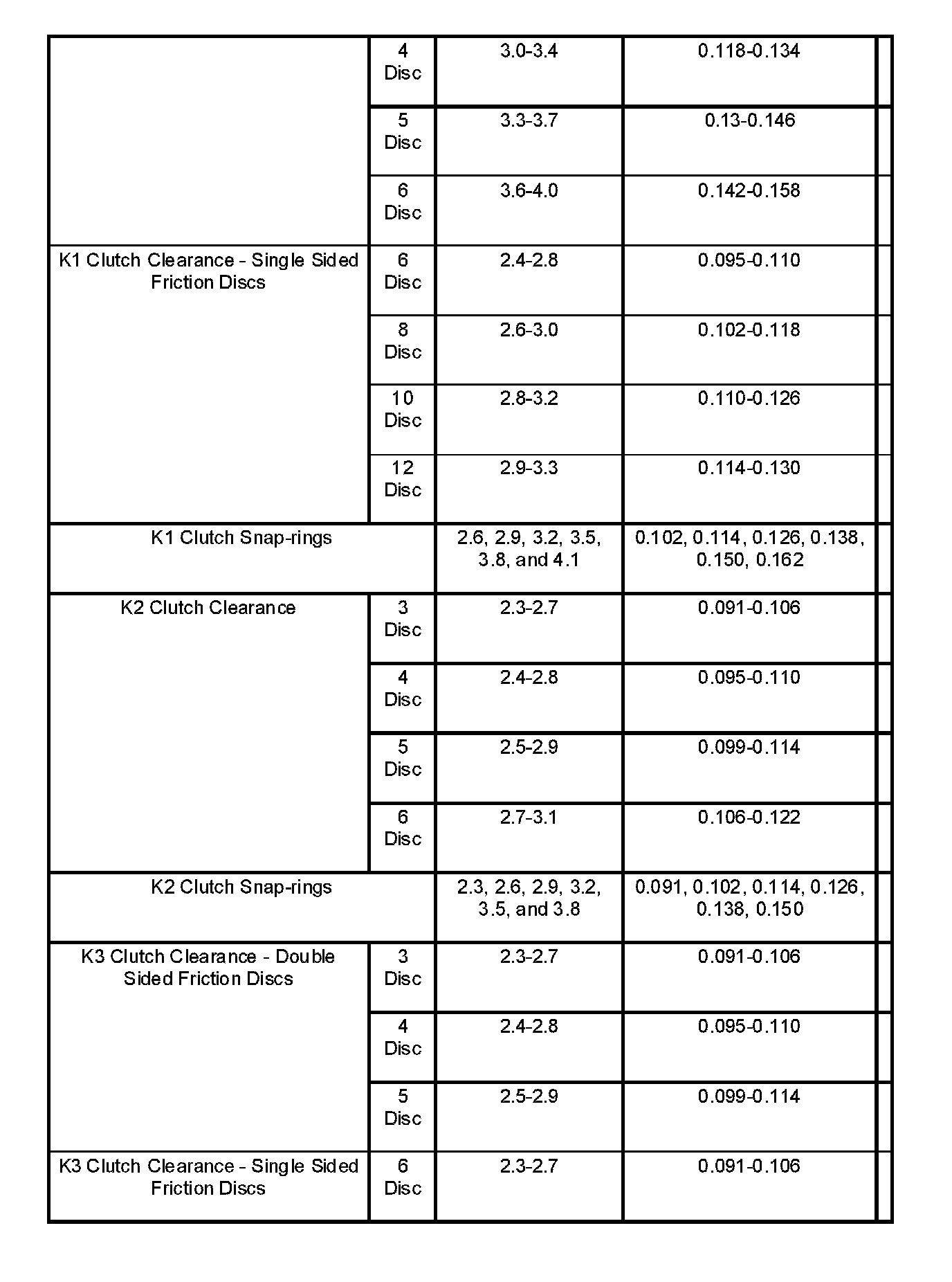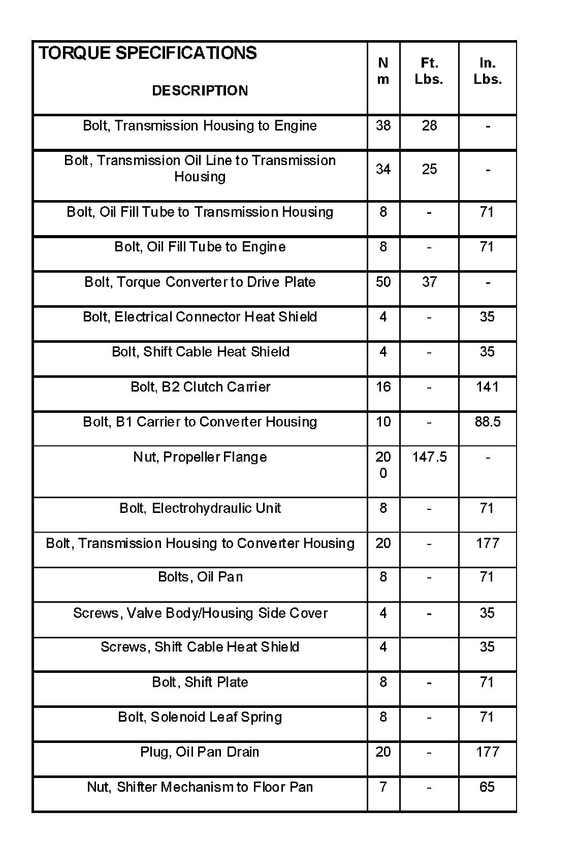 Torque Specifications: