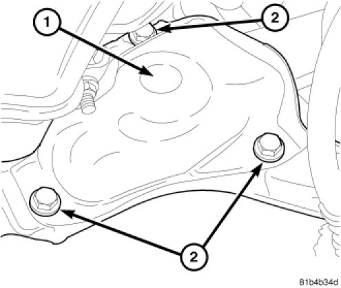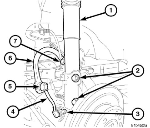 4. Install the strut bolts (2) to the steering knuckle. Tighten to 140 Nm (103 ft. lbs.) Plus an additional 120� turn.