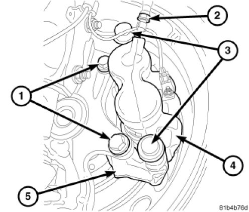 8. Install the disc brake caliper adapter (1) to the knuckle. Tighten to 80 Nm (59 ft. lbs.) Plus an additional 40� turn.