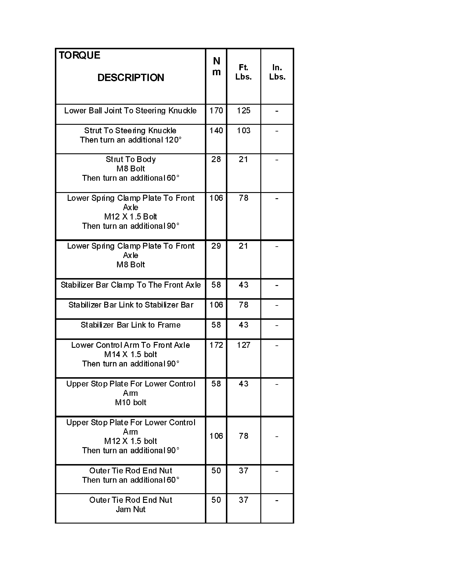 Torque Specifications: