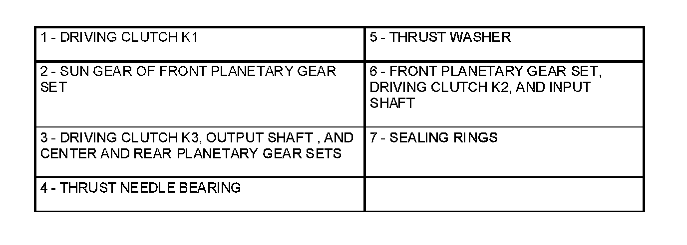 22. Remove output shaft with center and rear gear set and clutch K3 (3).