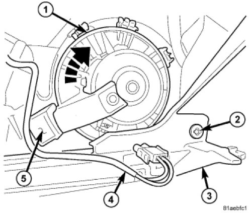 3. Rotate the blower motor clockwise until it is fully seated in the HVAC housing. Make sure the blower motor locking feature is fully engaged to the housing.