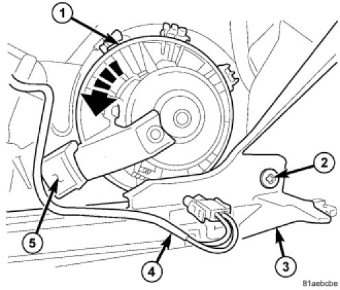 5. Disengage the locking feature and rotate the blower motor (1) counterclockwise until it is loose from the HVAC housing.