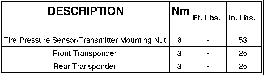Tire Monitoring System: Specifications
