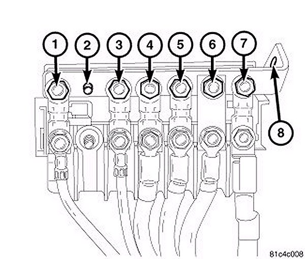The Power Distribution Center (PDC) is attached to a stud (8) on the positive battery clamp of the starter battery. For more information, refer to