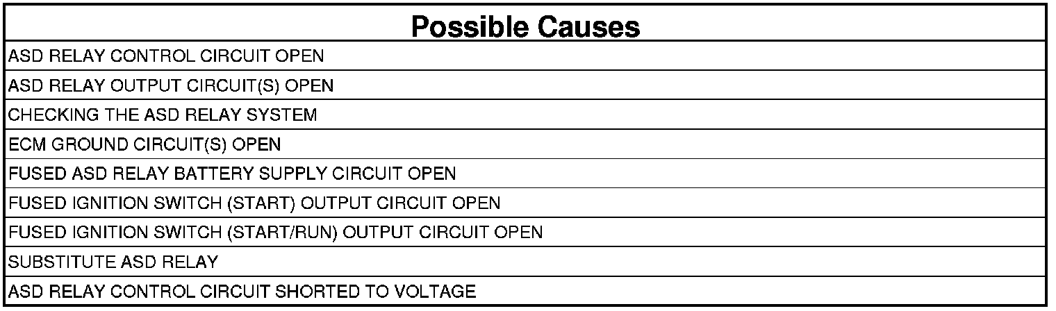 - Repair the ASD Relay Control circuit for a short to voltage.
