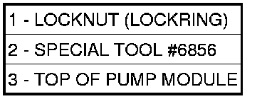 4. The plastic fuel pump module locknut (lockring) is threaded onto fuel tank. Install Special Tool #6856 to locknut and remove locknut. The fuel pump module will spring up slightly after locknut is removed.