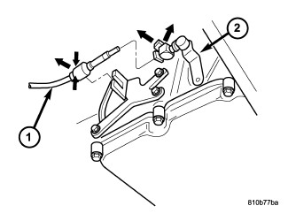 c. Install bolts (2) to cylinder head. Tighten the bolts to 8 Nm (71 in.lbs.).