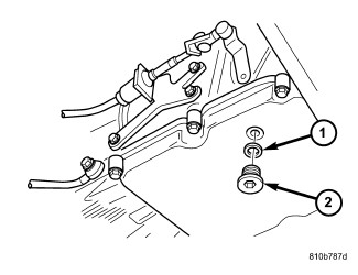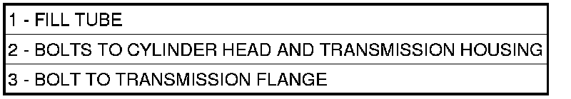 d. Install bolt (3) to transmission flange and bolt (2) to transmission housing. Tighten the bolt to 8 Nm (71 in.lbs.).