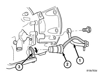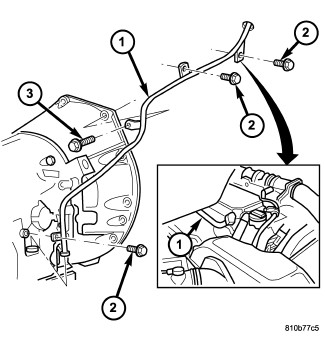 8. Install the vent hose bracket to the transmission. Torque the bolt to 38 Nm (28 ft.lbs.).