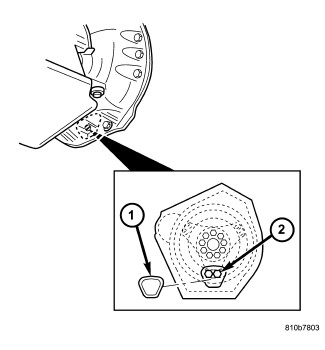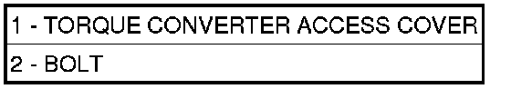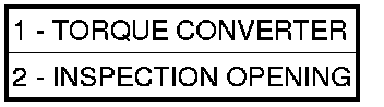 3. Move the torque converter (1) to shown position. Check position of torque converter through housing opening (2) when installing transmission.