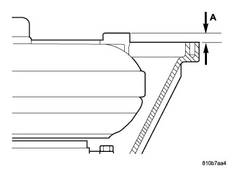 2. Measure distance "A" from torque converter to transmission housing. If the torque converter is properly installed, distance "A" will be 55 mm (2.17 in.).