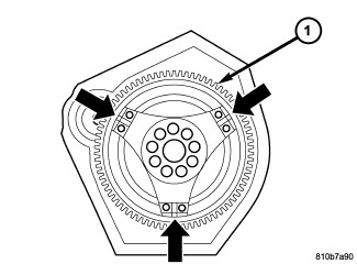 a. Install the first pair bolts (2) at circumference of driving plate snug only.