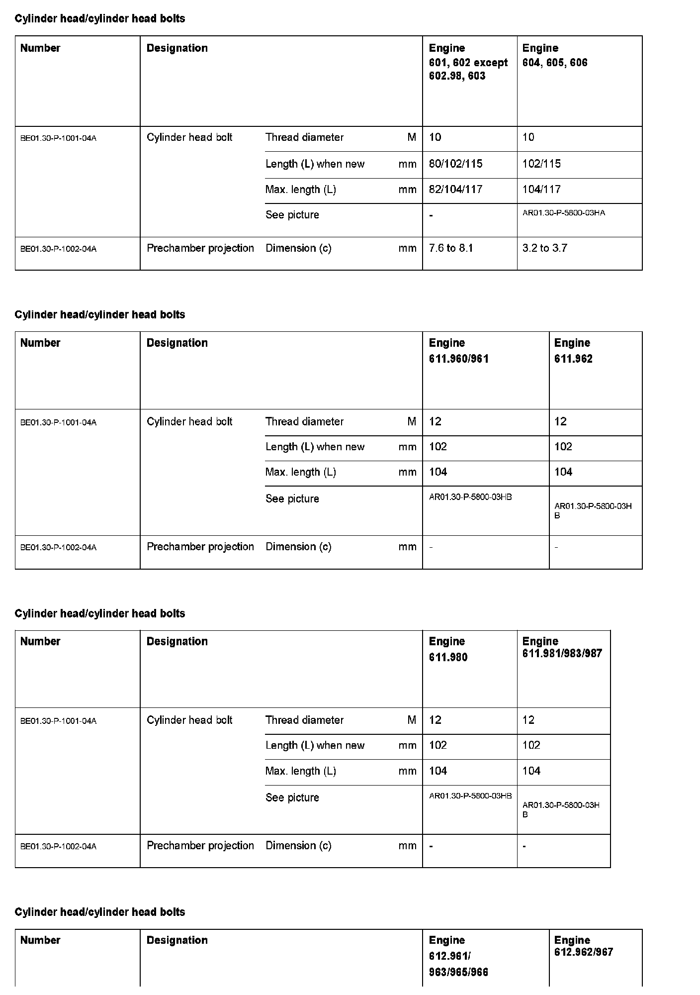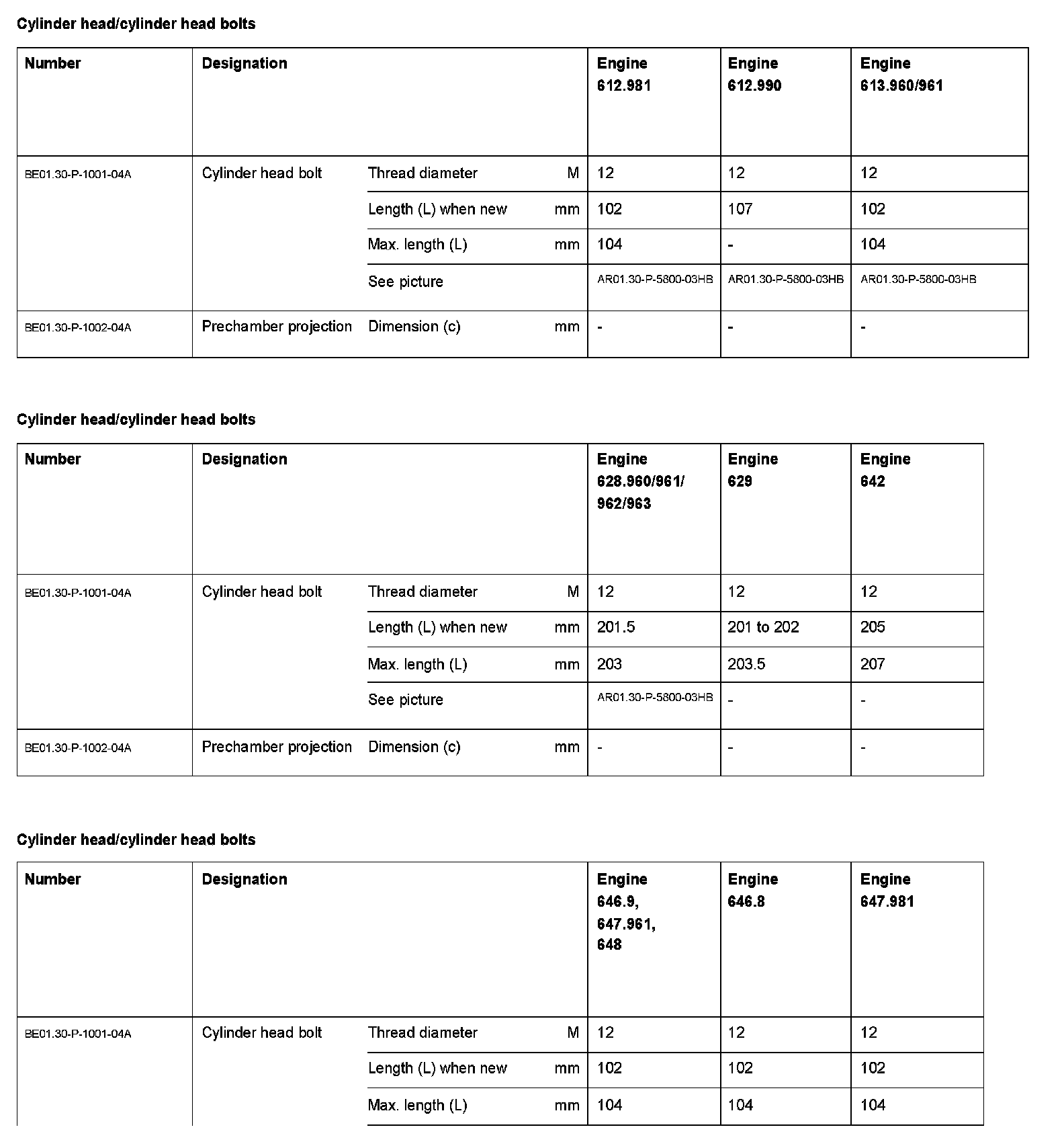 BE01.30-P-1000-04A Cylinder Head/Cylinder Head Bolts