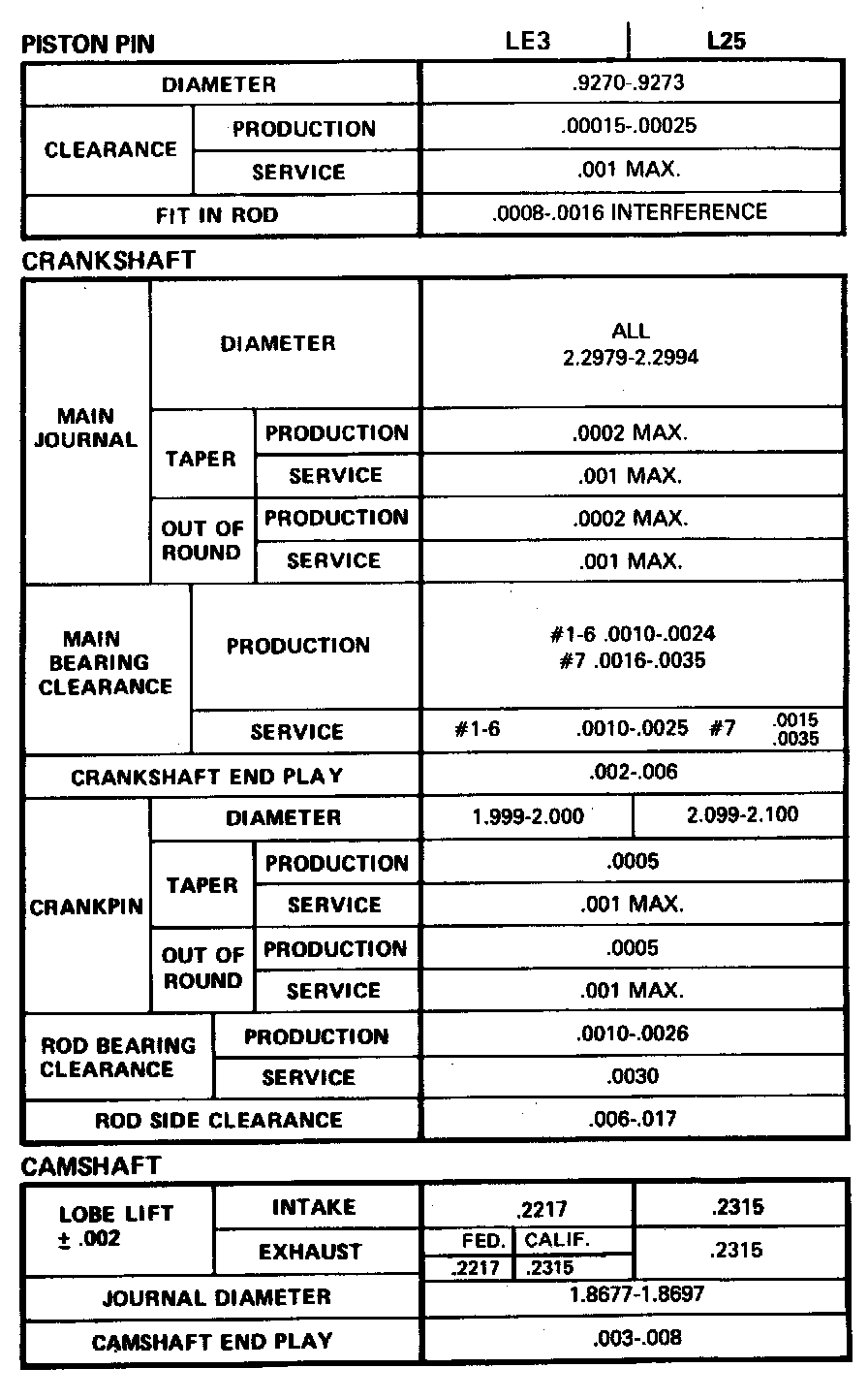Engine Specifications: