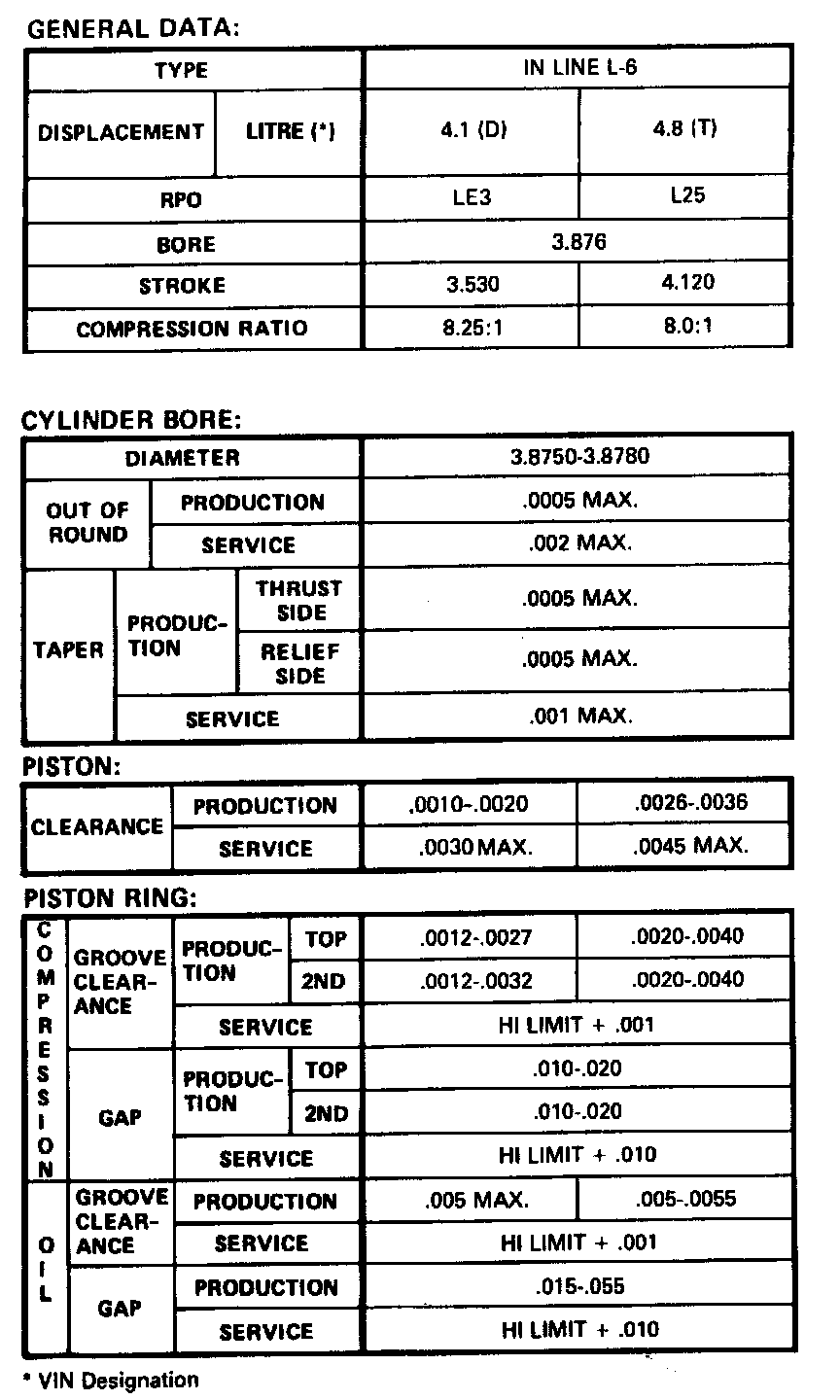 G 2500 3/4 Ton Van L6-250 4.1L VIN D 2-bbl