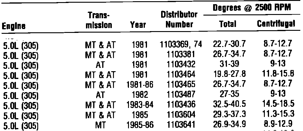 DISTRIBUTOR TIMING ADVANCE: