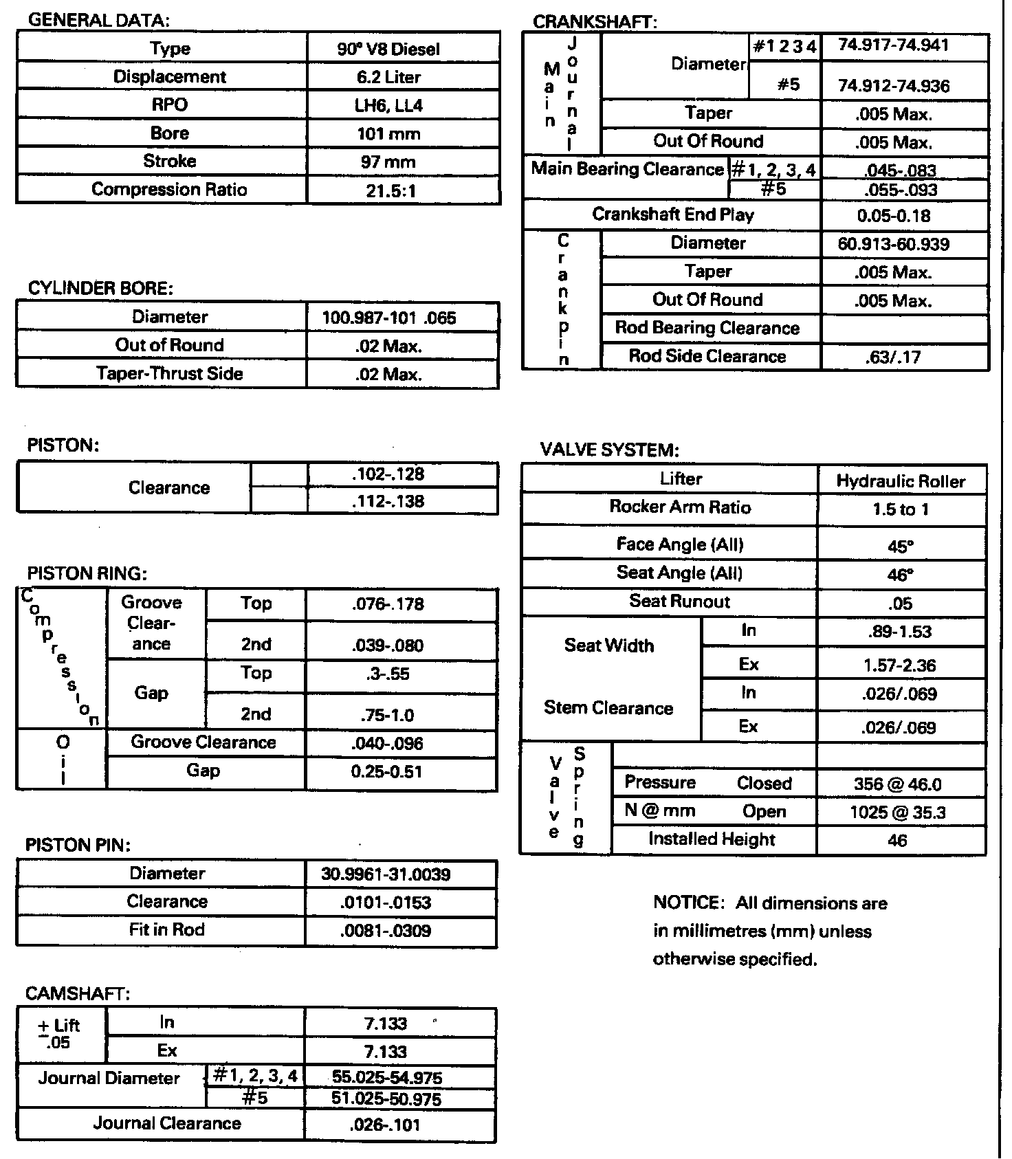 Engine Specifications: