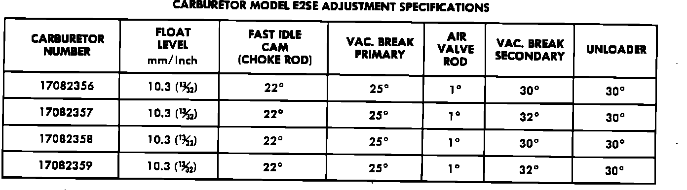 Carburetor Specifications: