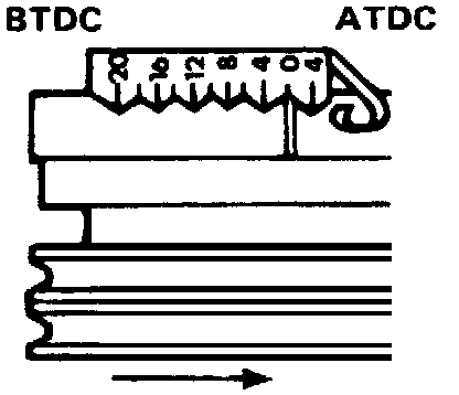 - Loosen distributor hold-down bolt and rotate distributor until timing mark on pulley or damper is aligned with specified degree on timing scale.