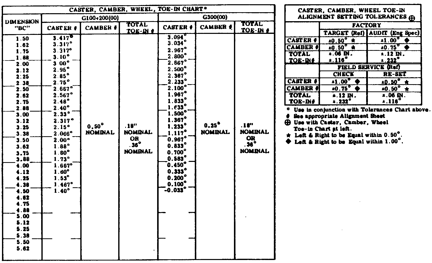 Alignment Specs. "G" Van: