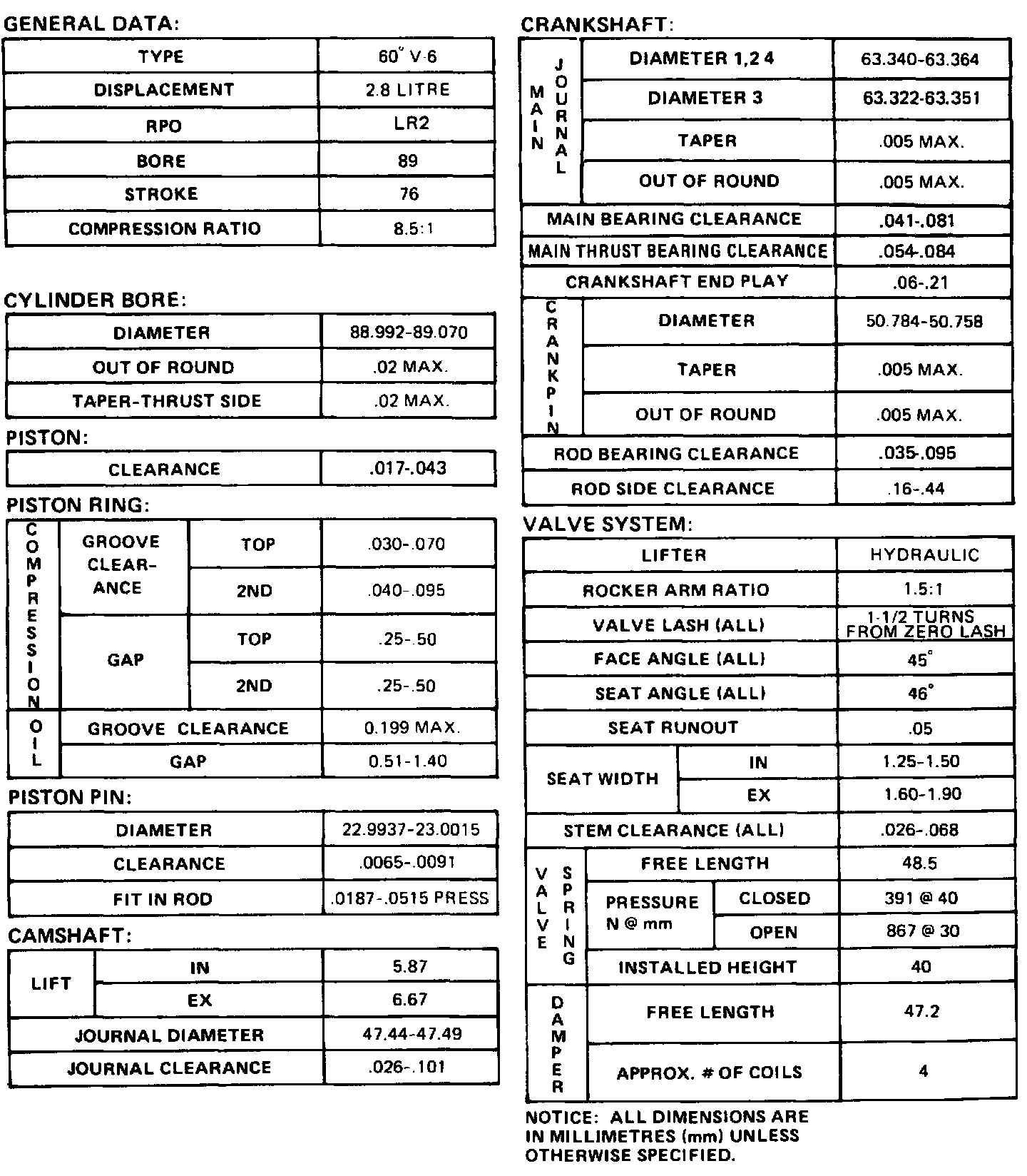 Engine Specifications: