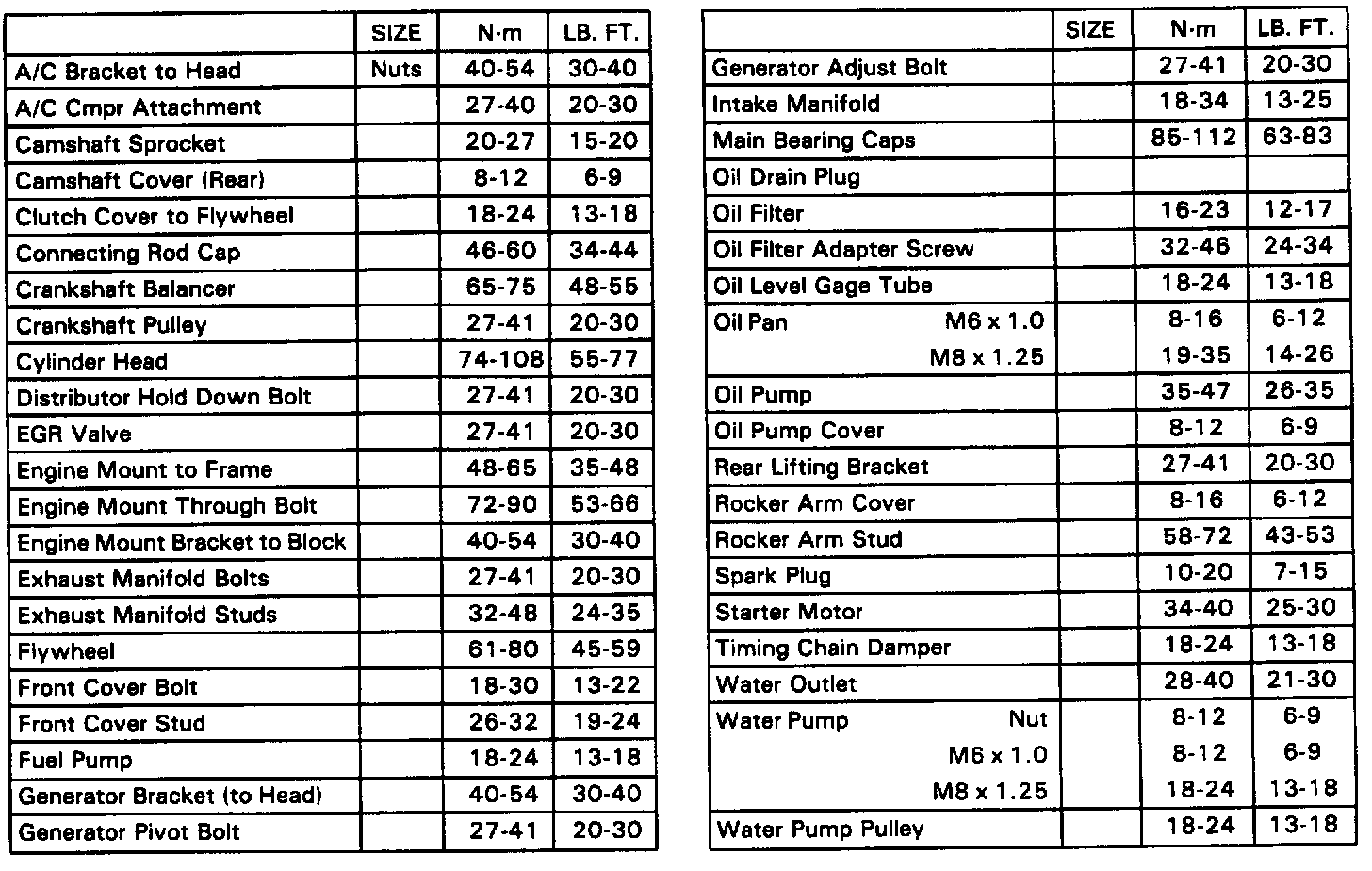 Torque Specifications: