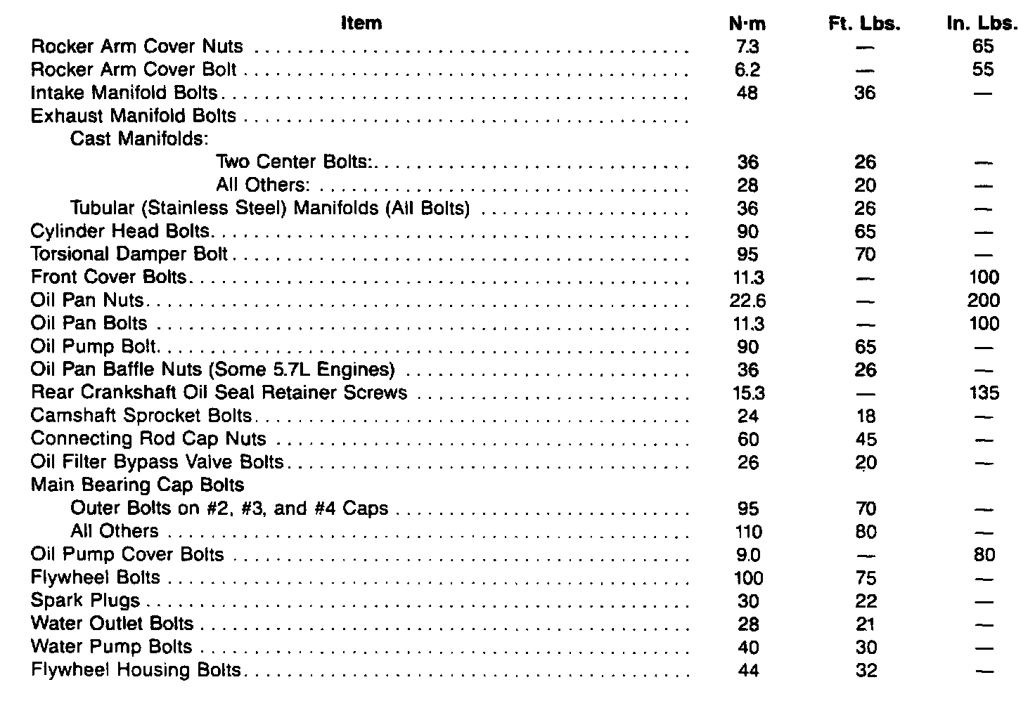 Torque Specifications: