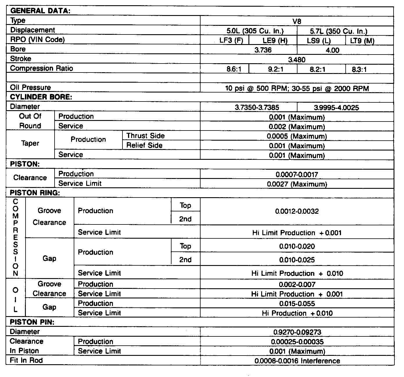 Engine Specifications: