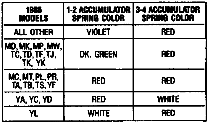 21. Install 1-2 accumulator spring onto the piston. On 1984-88 models, refer to Figs. 83, 84, 84A, 84B and 84C.