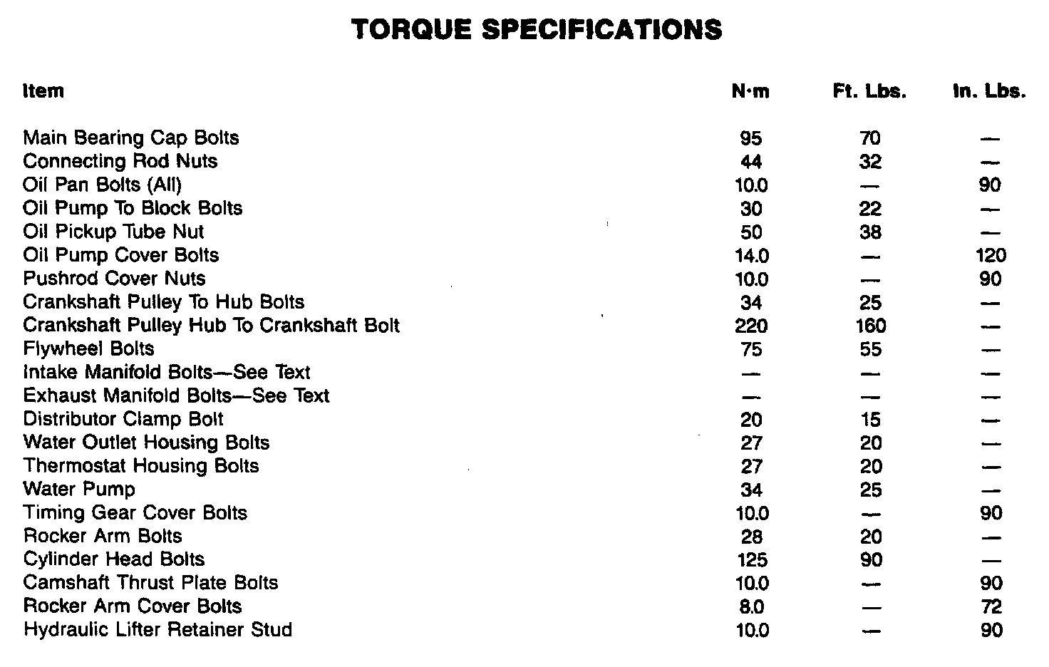 Torque Specifications: