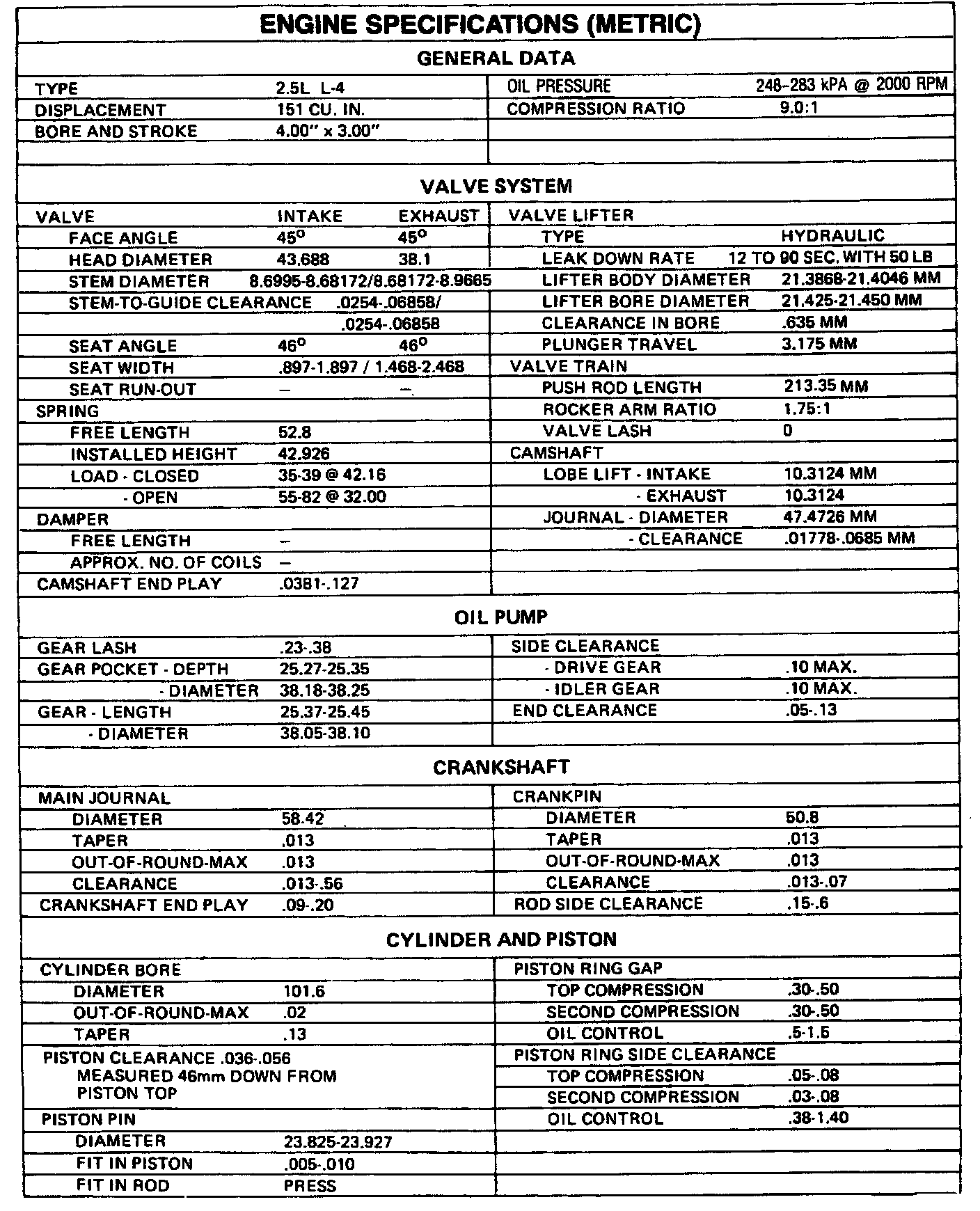 Engine Specifications (METRIC):