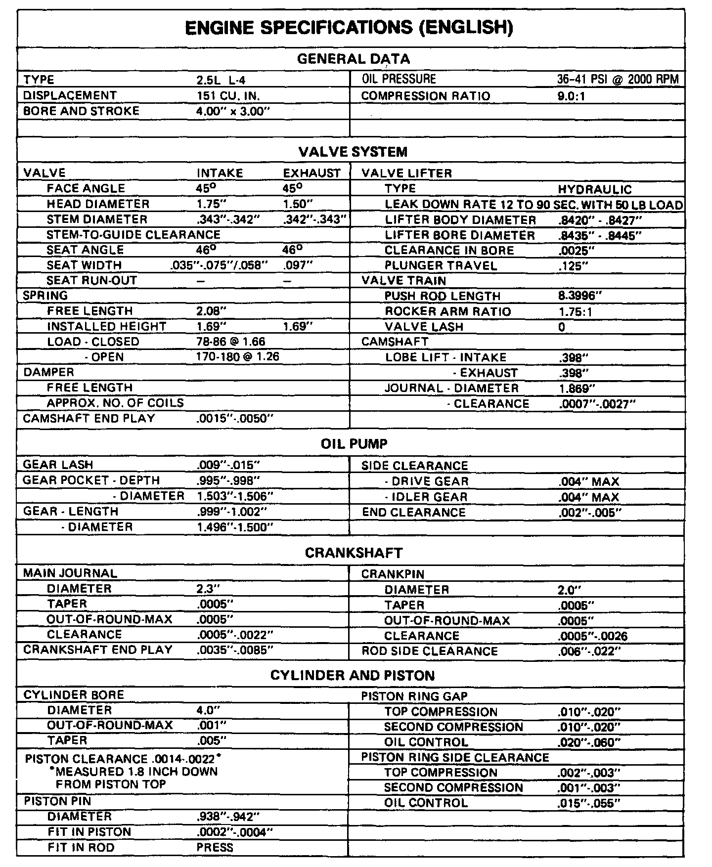 Engine Specifications: