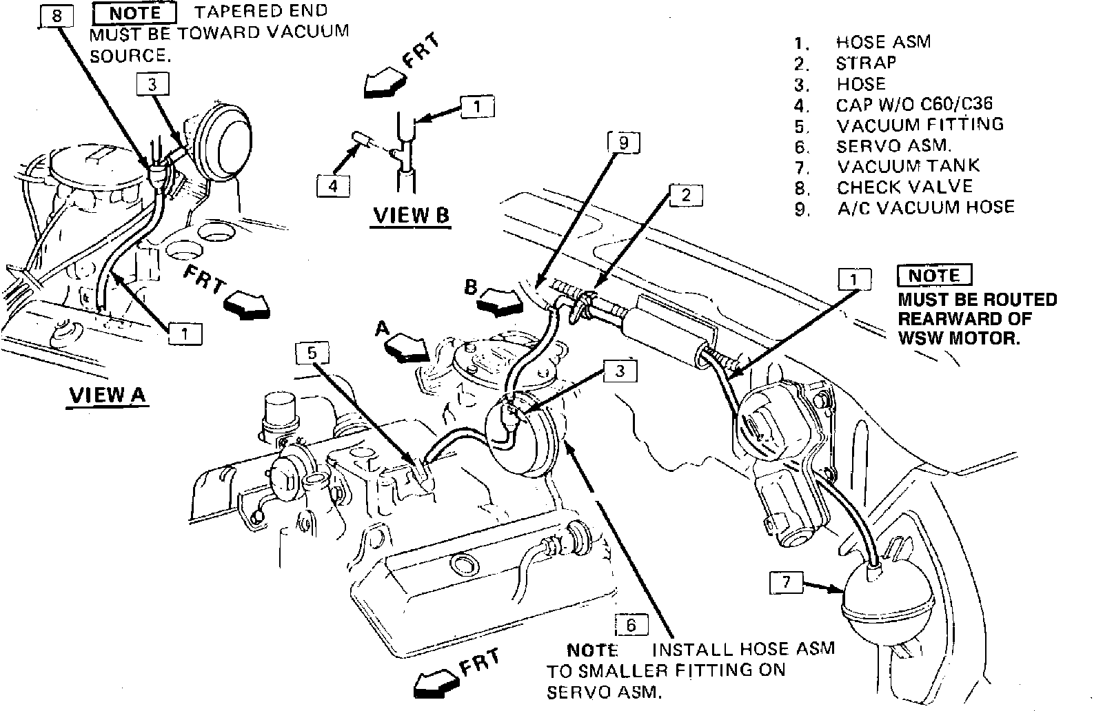 Refer to Figs. 22 through 36 for vacuum hose routing schematics.Fig. 41 Vacuum hose routing. Models w/accumulator & check valve (models less accumulator and/or check valve similar):