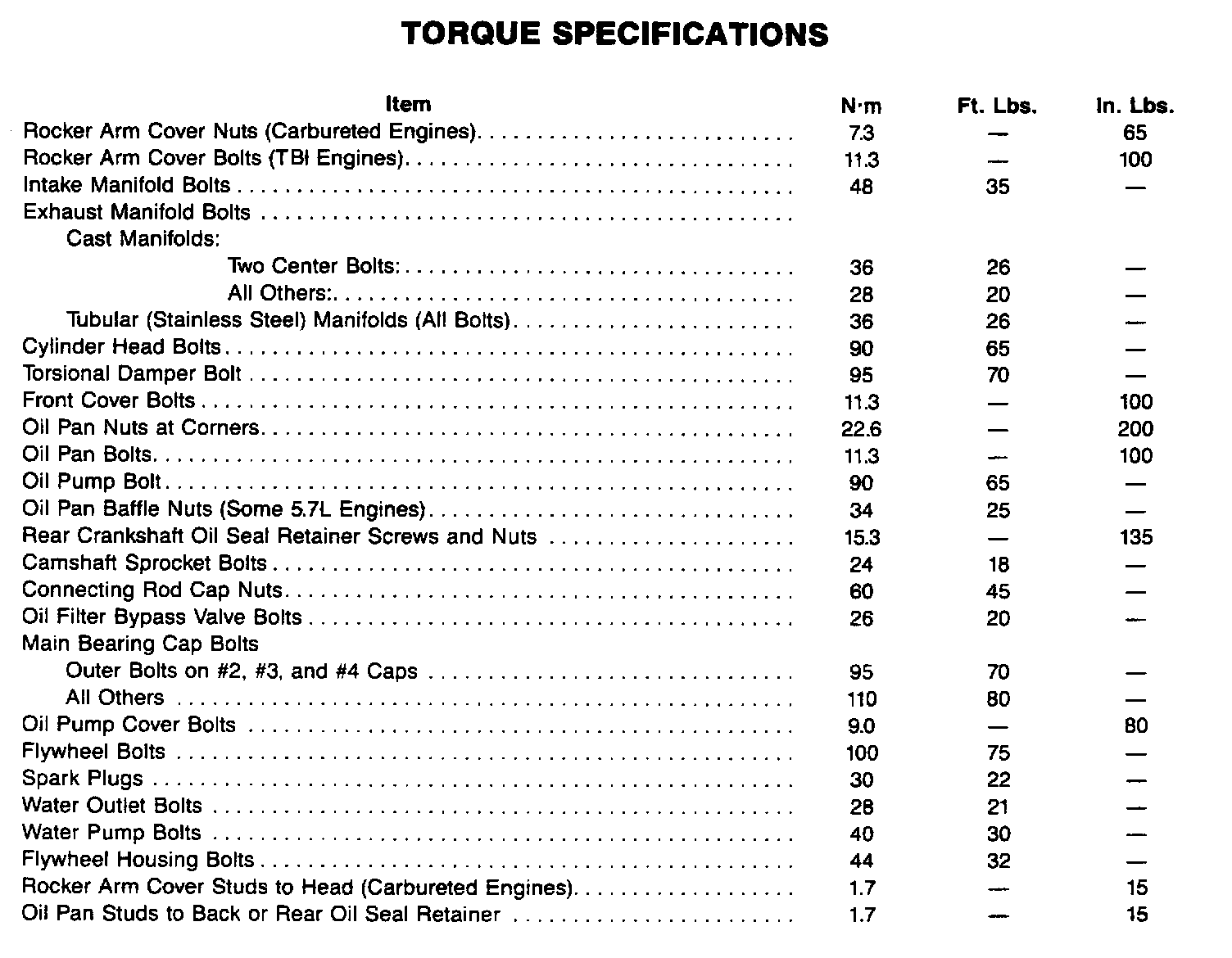 Torque Specifications: