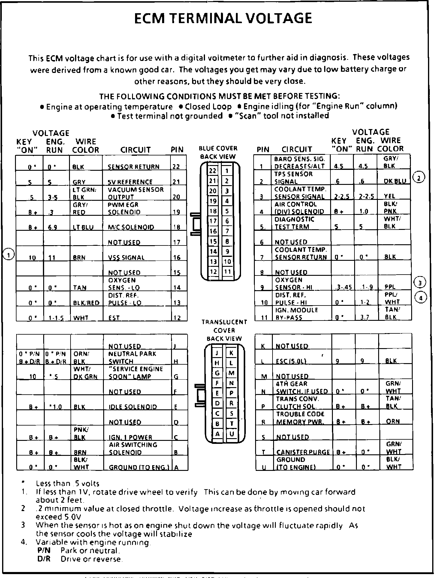 ECM Terminal Identification & Voltage Specifications: