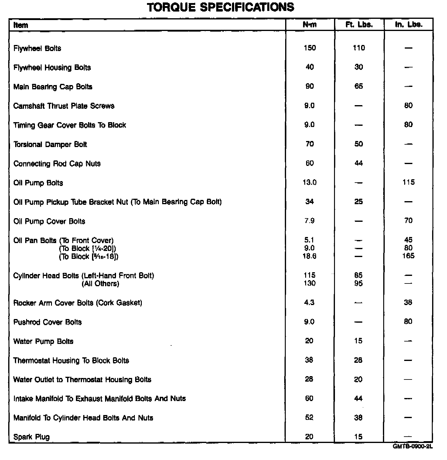 Fastener Tightening Specifications - Engine