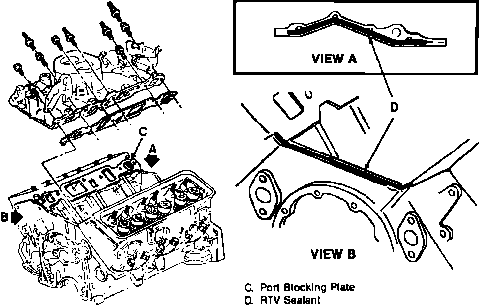 a. Remove all traces of old sealant from cylinder head, block and manifold.