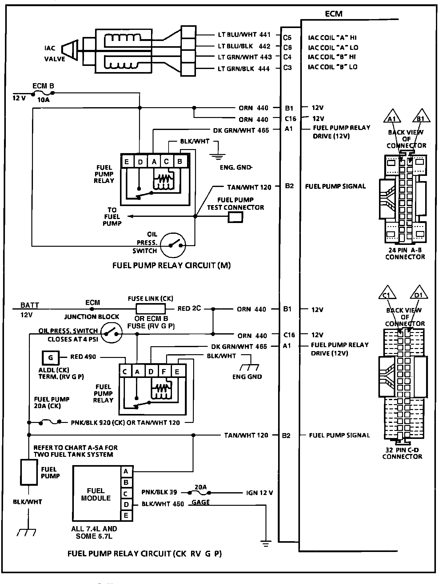A1 = FUEL PUMP RELAY DRIVE (12V).