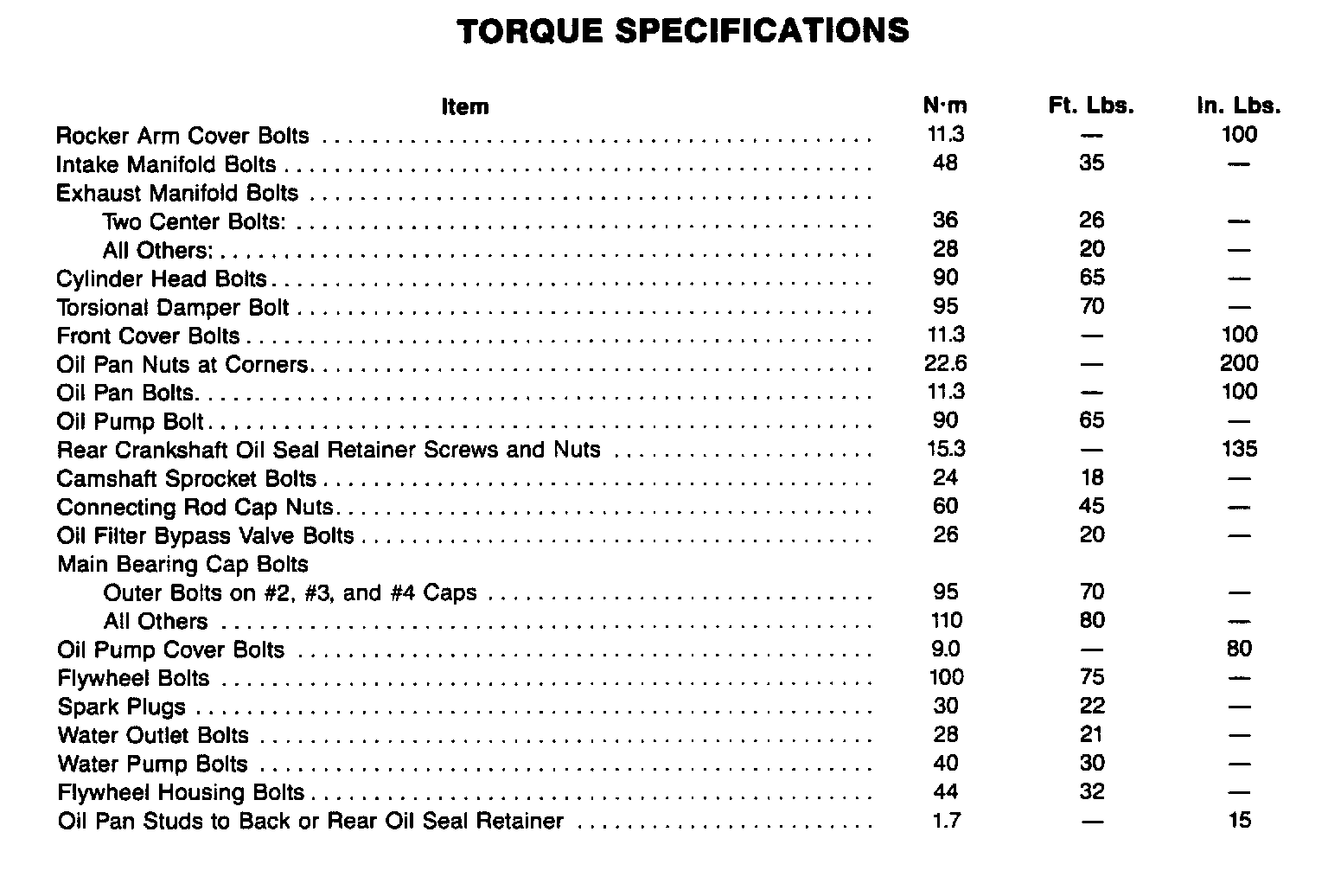 Torque Specifications: