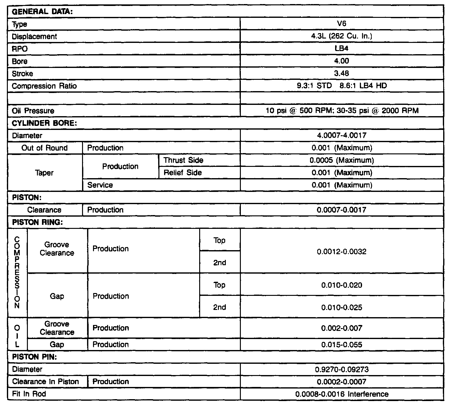 Engine Specifications: