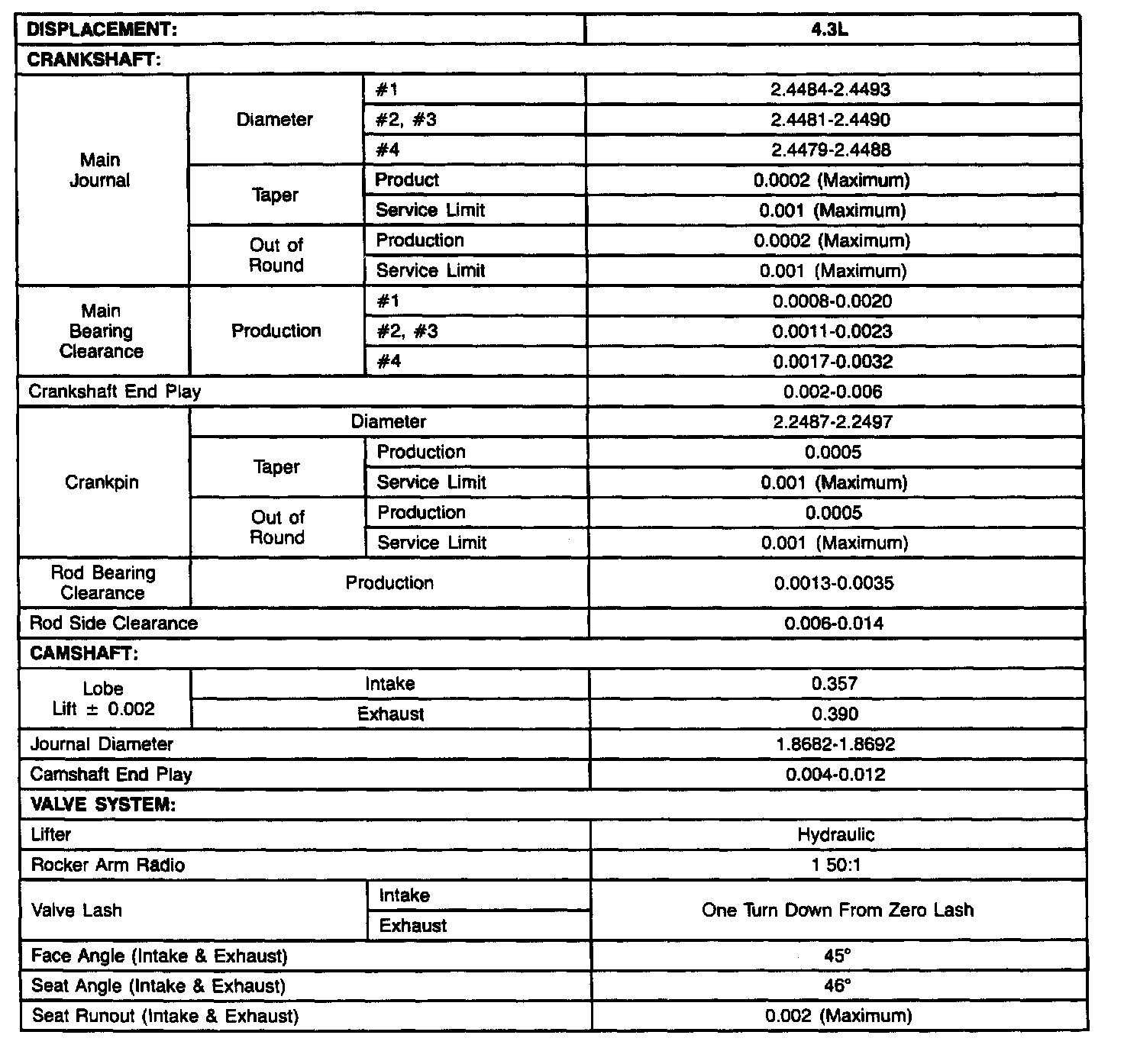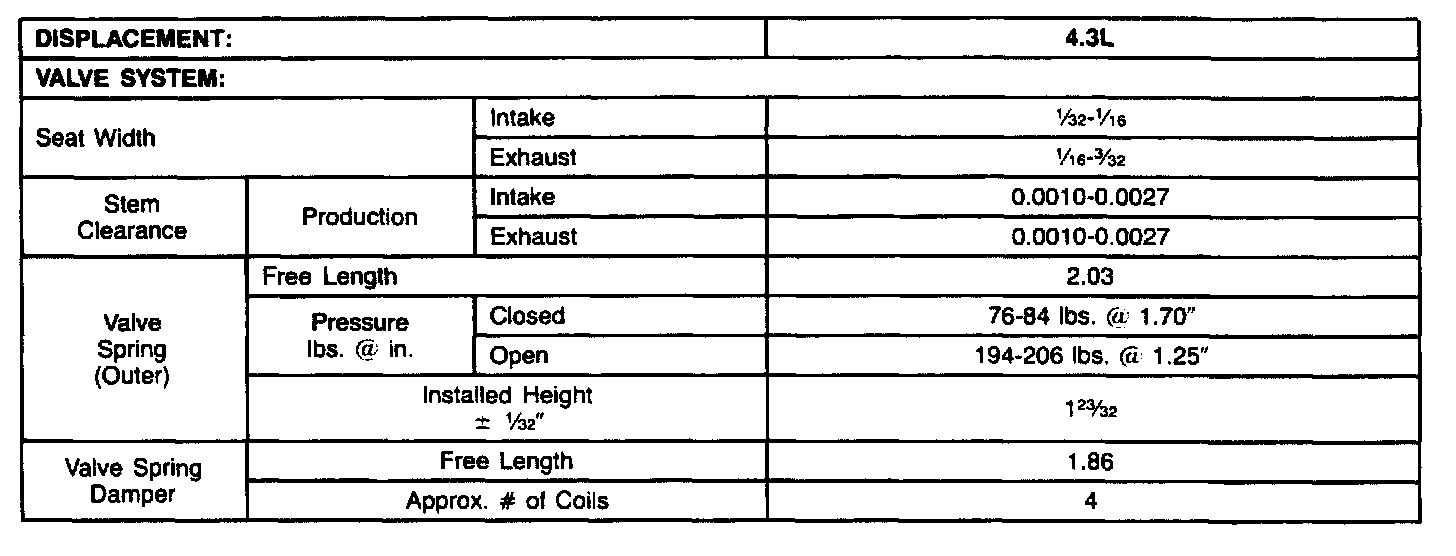 Continued Engine Specifications: