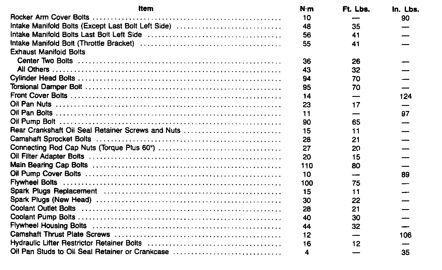 Torque Specifications:
