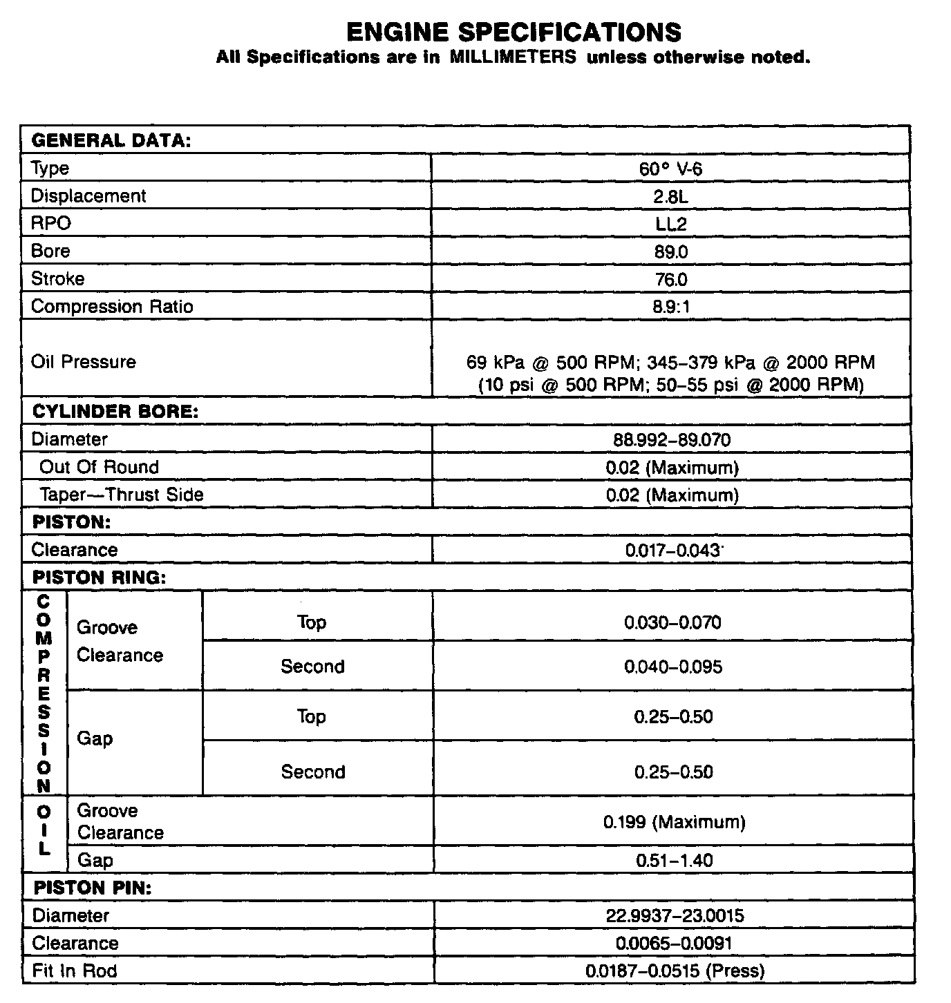 Engine Specifications: