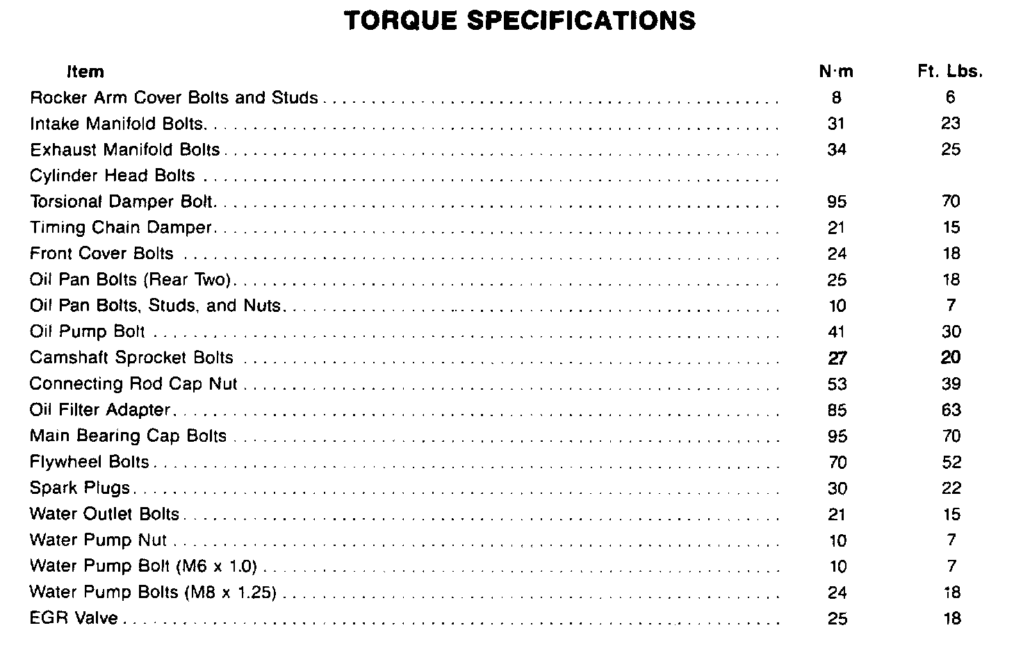 Torque Specifications: